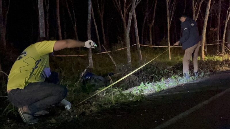 ในร่องห่างจากศพประมาณ 2 เมตร พบรถจักรยานยนต์ ยี่ห้อฮอนด้า เวฟ 110i ทะเบียน พัทลุง ของผู้ตายล้มอยู่ ส่วนบนถนนห่างประมาณ 50 เมตร พบปลอกกระสุนขนาด 9 มม. อีกจำนวน 1 ปลอก จึงเก็บไว้เป็นหลักฐาน
