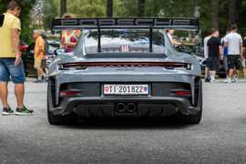 ด้านหลังของรถไม่มีความผิดปกติหรือดูแปลกประหลาดมากนัก ดิฟฟิวเซอร์ขนาดใหญ่ ยางหลังหน้ากว้างแบบรถแข่ง และตาข่ายขนาดใหญ่ที่ปิดช่องระบบส่งกำลังด้านหลัง ช่วยให้อากาศร้อนระบายออกได้อย่างรวดเร็ว ท่อไอเสียเป็นแบบเดี่ยวขนาดใหญ่ ขนาบข้างด้วยท่อขนาดเล็กสองท่อ