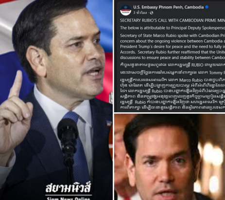 การสนทนาทางโทรศัพท์ระหว่างรัฐมนตรีว่าการกระทรวงการต่างประเทศ รูบิโอ กับสมเด็จฯ ฮุน มาเนต นายกรัฐมนตรีกัมพูชา