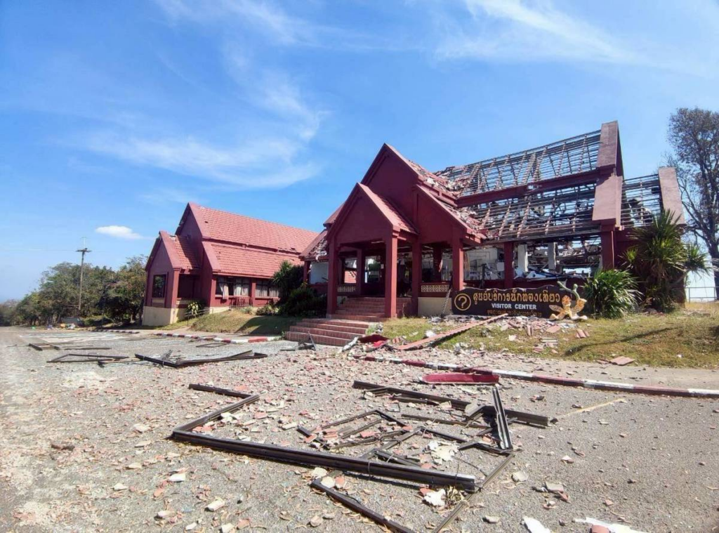 เพจ Army Military Force เผยแพร่ภาพ พื้นที่ผามออีแดงภายในอุทยานแห่งชาติเขาพระวิหาร อ.กันทรลักษ์ ของไทย ได้รับความเสียหายอย่างหนัก หลังตกเป็นเป้าหมายของการโจมตีด้วยอาวุธหนักจากทหารกัมพูชา
