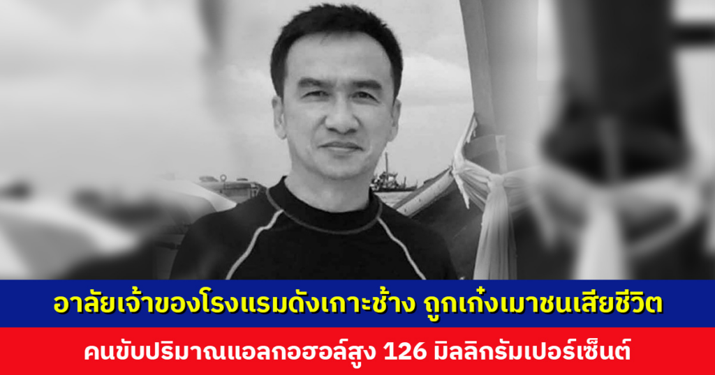 อาลัยเจ้าของโรงแรมดัง เกาะช้าง ถูกเก๋งเมาพุ่งชนเสียชีวิต คนขับมีปริมาณแอลกอฮอล์สูง 126 มิลลิกรัมเปอร์เซ็นต์